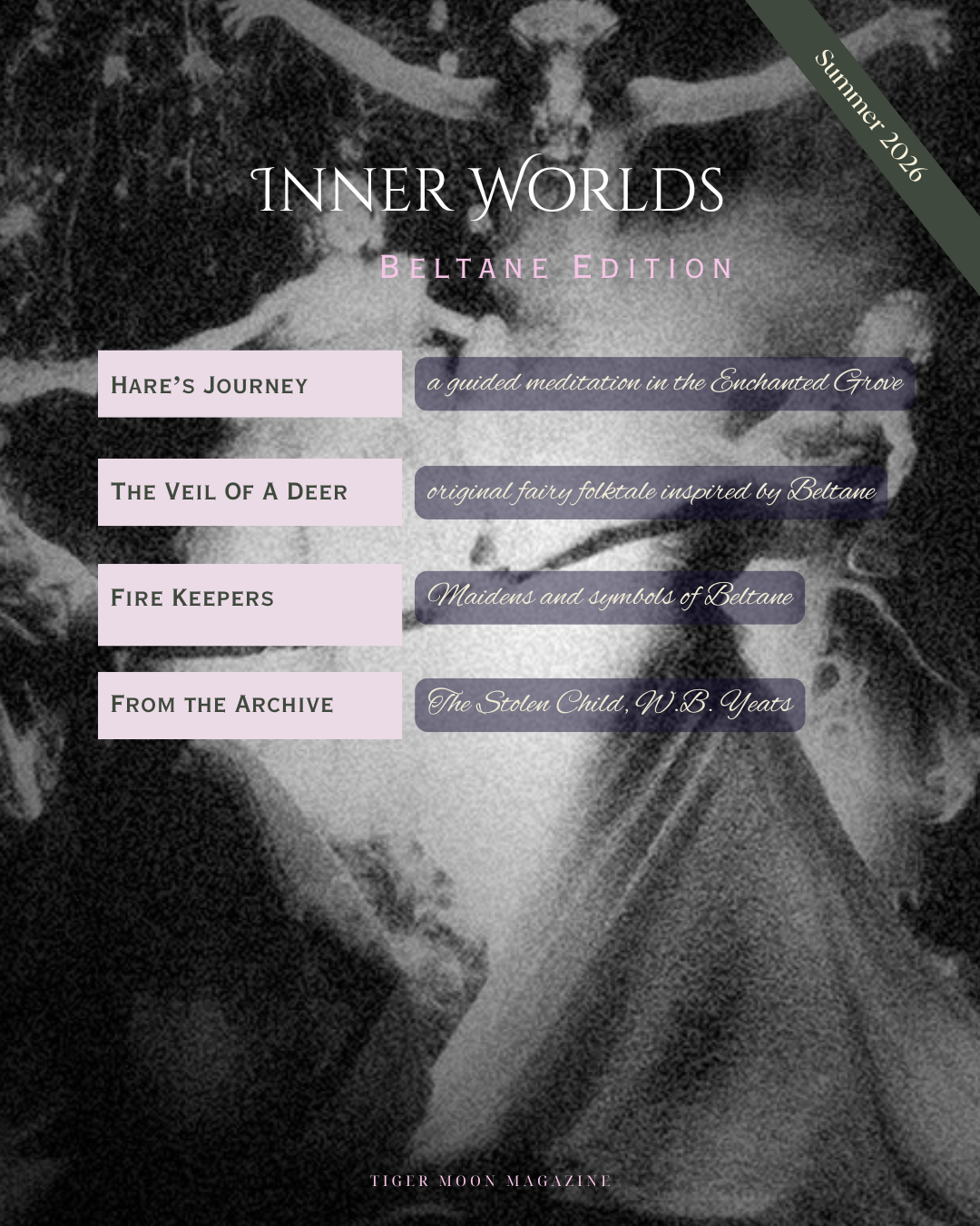 Inner Worlds is the heart of Tiger Moon: a space devoted to the landscapes within. Here, ancient myths and original folklore intertwine with symbol, story, and soul, inviting readers to explore the unseen forces that shape their inner lives. Through guided meditations, poetry, and archetypal imagery, this section offers both reflection and revelation: a return to the imagination as a place of meaning, healing, and quiet transformation.
